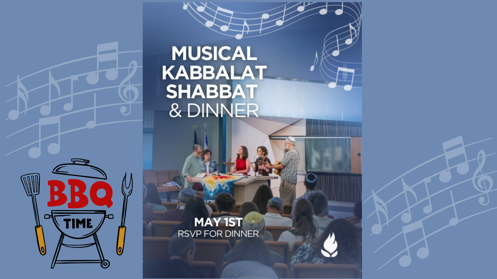 Join us for a joyful Lag BaOmer Kabbalat Shabbat with Rabbi Lauren and the davening team, featuring music and guitar, followed by a delicious, family-friendly BBQ dinner with options for everyone.
