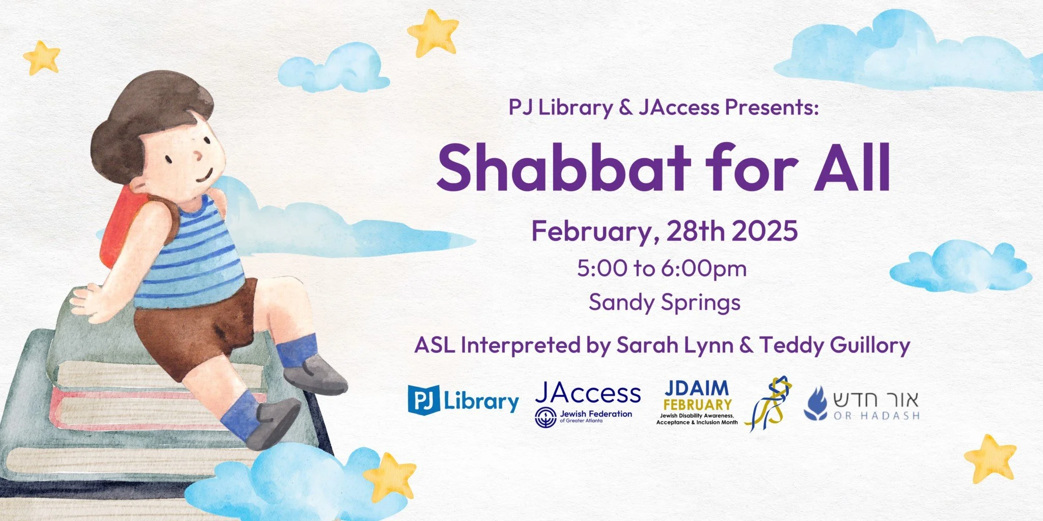 Introducing the Shabbat for All program! Celebrate Jewish Disability Awareness, Acceptance, and Inclusion Month with JAccess and PJ Library Atlanta as we promote year-round inclusion in our vibrant Atlanta community. Join us for a fun-filled event featuring hands-on activities such as felt art, challah cover crafting, and a story corner for all ages.
