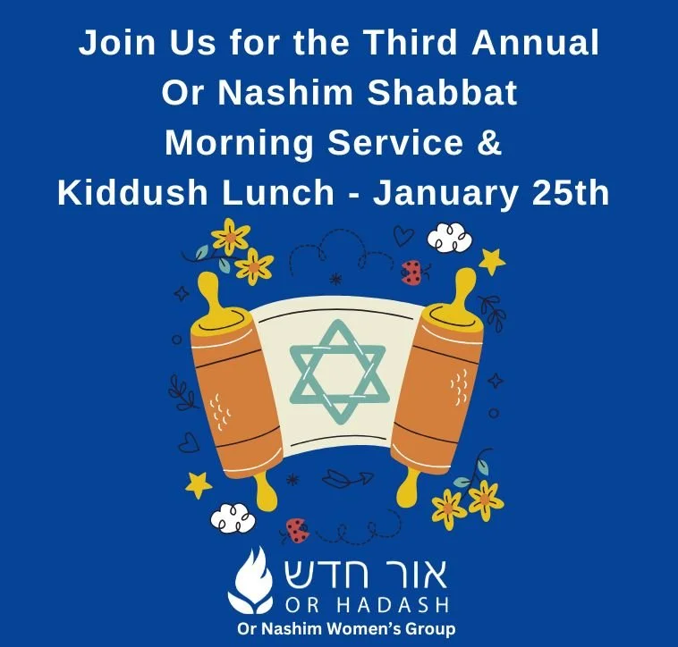 The women of Or Nashim warmly invite you to a special Shabbat morning service, followed by a festive Kiddush lunch. Together, we’ll honor the theme Am Yisrael Chai and celebrate the enduring spirit of our people.
